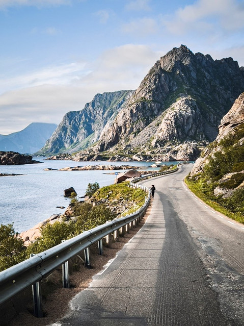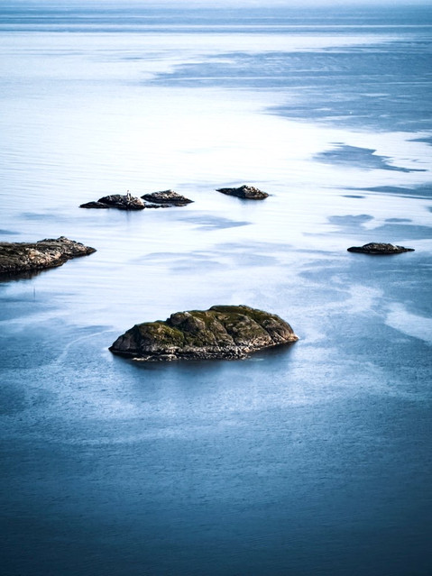 Am Nachmittag will ich den Heia erklimmen, von dem man eine grandiose Aussicht auf Henningsvaer haben soll. Ich gehe einem anderen Wanderer hinterher und stelle erst fast ganz oben fest, dass der klettern und nicht nicht auf den gleichen Berg will. Fuck! Danke Norwegen, dass es hier nirgends Markierungen oder Wegweiser gibt. Ich bin auf der anderen Seite und muss einen riesigen Umweg und einige Höhenmeter mehr gehen. Aber dafür hat man von hier oben eine wirklich grandiose Aussicht: auf den Bergsee, auf die Felsen, aufs Meer, auf die vielen Inseln und auf die Stadt - Wow!