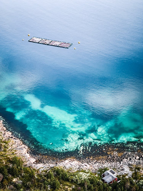 An einer Fischfabrik treffe ich einen polnischen Arbeiter. Die exportieren hier ihren ganzen Fisch nach Dänemark. 10 t kommen gerade wieder mit einem Kutter an. Ich erzähle ihm, dass wir verzweifelt versucht haben, frischen Fisch auf den Lofoten zu bekommen. Er meinte, keine Chance und will mir einen Fisch vom neuen Fang schenken. Ich lehne dankend ab, denn das würde heißen, selber ausnehmen etc. und das ganze im Camper …
