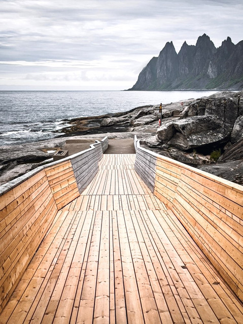 Auch hier gibt es wieder eine nationale Touristenroute mit architektonisches Highlights und tollen Ausblicken. Glücklicherweise ist die nicht annähernd so voll wie die auf den Lofoten.