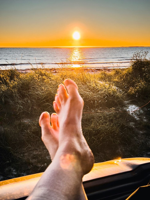Was für eine herrliche Nacht. Ich habe bis morgens um 2:00 Uhr in meinem Aufstelldach gelegen und die Mitternachtssonne mit Blick auf das Meer genossen. Wahnsinn, was sie noch für eine Kraft mitten in der Nacht hat. Ich kann ja die komplette Front vorne aufmachen und man liegt hier oben dann schön windgeschützt und kann genießen. Noch ein Grund, warum ich den Bulli so sehr liebe.🥰