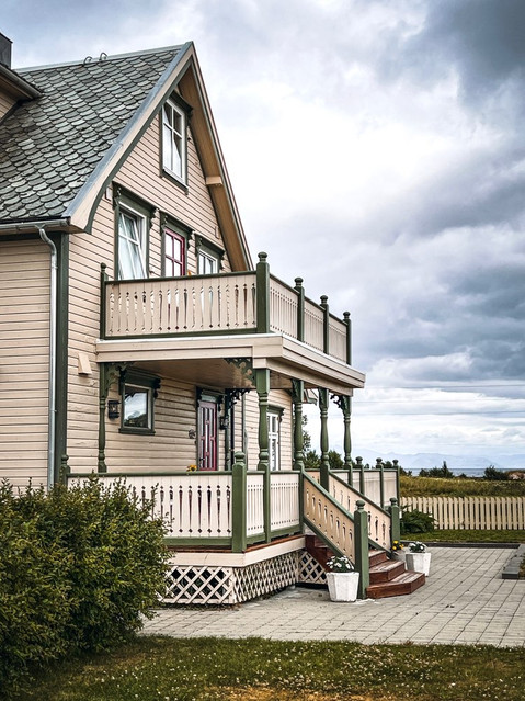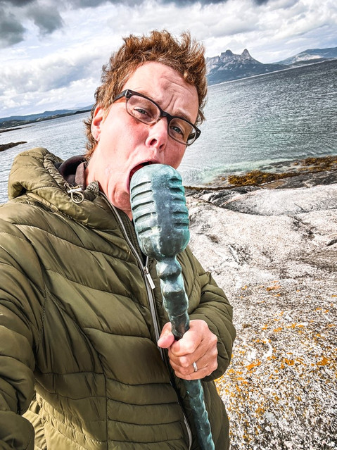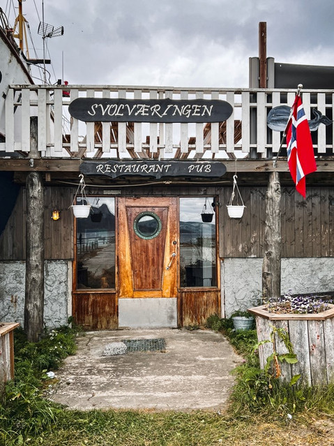 Der Tag fängt mit einem schönen Bad im Meer an. Ich mache meine Morgenroutine und fahre noch mal nach Tranøy rein. Das Dörfchen hier ist echt nett – tolle Häuser, 3 Galerien, total gemütliche Atmosphäre, überall steht Kunst, … Ich lande im einzigen Café – total urig und ohne englische Karte. Der Besitzer meint, hier kommen nicht so viele Ausländer her. Cool, dann bin ich hier ja genau richtig. Das Café ist brechend voll mit Norwegern, die mittags schon jede Menge Kuchen vertilgen. Da schließe ich mich gleich mal an, denn es gibt frisch gebackene, noch warme Zimtschnecken.😋