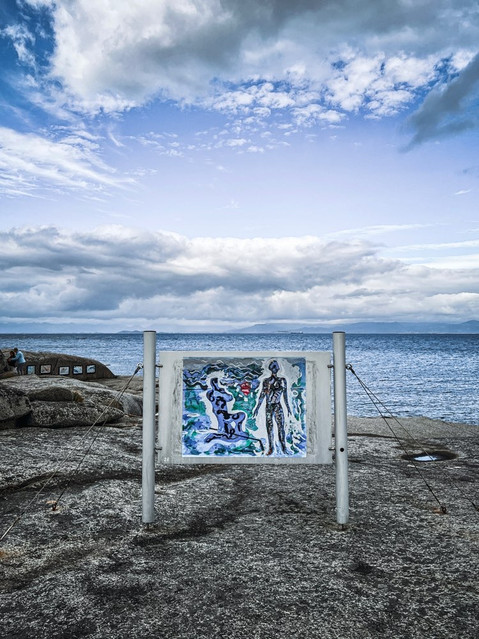 Ich komme mit der Bedienung ins Gespräch und es stellt sich heraus, dass sie tatsächlich einige Jahre in Kiel gelebt hat. So klein ist die Welt… Sie erzählt mir, dass es hier noch einen Kunstpfad gibt, den ich unbedingt sehen sollte. Das mache ich doch gleich mal und komme nicht nur an jeder Menge Kunst, sondern auch mal wieder an den schönsten Stränden vorbei. Die beiden Galerien müssen natürlich auch besucht werden und dann sitze ich noch Ewigkeiten in der Felsenlandschaft herum. Das ist mal wieder so ein Ort, an dem ich es durchaus noch ein paar Tage aushalten könnte.